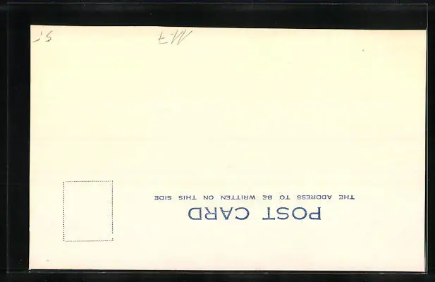 Personenbezogene Daten auf der Rückseite der Karte wurden durch blauen Textmarker unkenntlich gemacht. Die blauen Stellen sind auf die Vorderseite durchgeweicht und wirken sich negativ auf das Postkartenfoto aus
