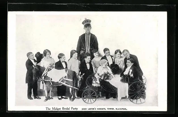 AK The Midget Bridal Party, John Lester`s Midgets Tower, Blackpool, Liliputaner