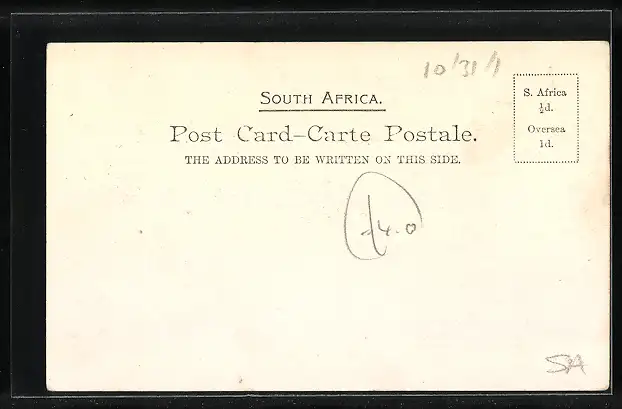 Personenbezogene Daten auf der Rückseite der Karte wurden durch blauen Textmarker unkenntlich gemacht. Die blauen Stellen sind auf die Vorderseite durchgeweicht und wirken sich negativ auf das Postkartenfoto aus