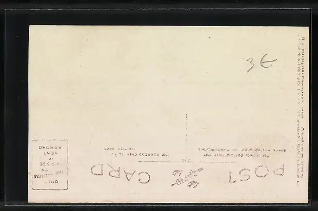 Personenbezogene Daten auf der Rückseite der Karte wurden durch blauen Textmarker unkenntlich gemacht. Die blauen Stellen sind auf die Vorderseite durchgeweicht und wirken sich negativ auf das Postkartenfoto aus