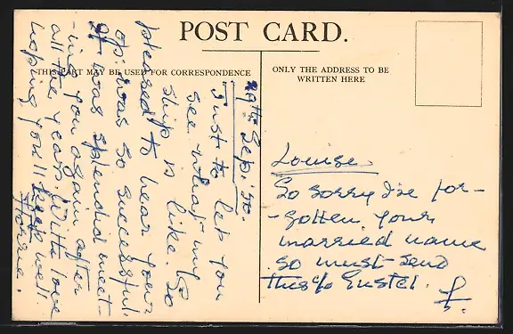 Personenbezogene Daten auf der Rückseite der Karte wurden durch blauen Textmarker unkenntlich gemacht. Die blauen Stellen sind auf die Vorderseite durchgeweicht und wirken sich negativ auf das Postkartenfoto aus