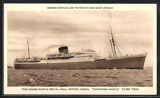 AK The Union-Castle Royal Mail Motor Vessel Capetown Castle unter Volldampf