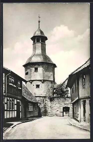 AK Themar /Thür., Alter Hexenturm mit Strasse