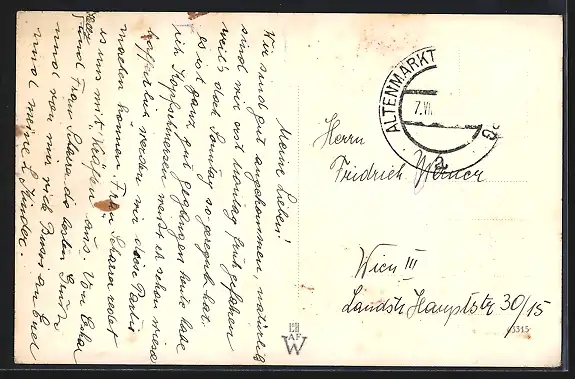 alte Ansichtskarte, gelaufen, Briefmarke entfernt, guter Zustand