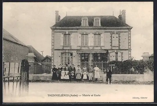 AK Thennelières, Mairie et École avec groupe d`enfants devant le bâtiment