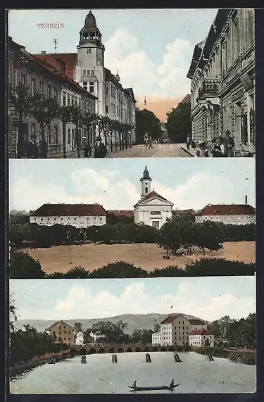 AK Theresienstadt / Terezin, Strassenpartie im Stadtkern, Kirche