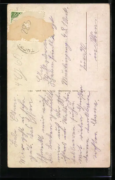 alte Ansichtskarte, gelaufen, Briefmarke entfernt, rückseitig Oberflächenschaden, guter Zustand