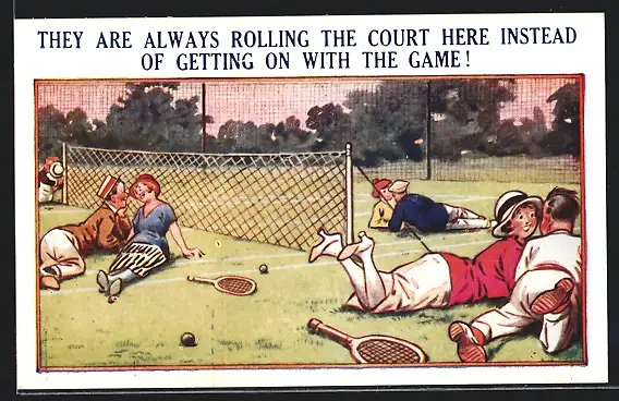 AK They are all rolling the Court here, Liebespaare liegen auf dem Tennisplatz