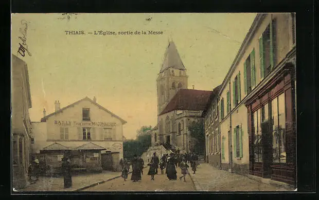 AK Thiais, L`Eglise, sortie de la Messe