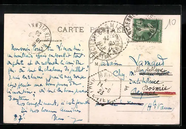gelaufen 1923, Abriebspuren Rand li. u. unten, Stempelspur, guter Zustand
