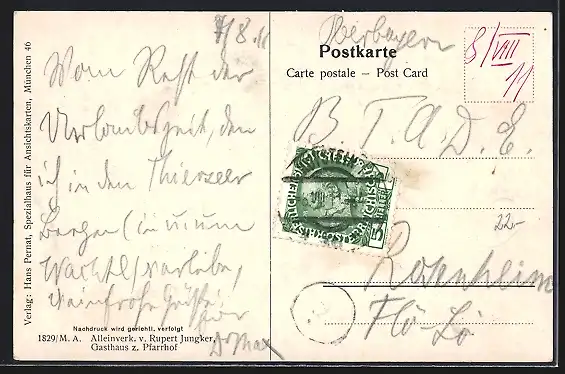 alte Ansichtskarte, gelaufen 1911, Rand beschnitten, guter Zustand