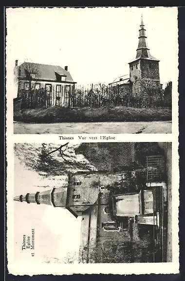 AK Thisnes, Vue vers l`Eglise, Eglise et Monument