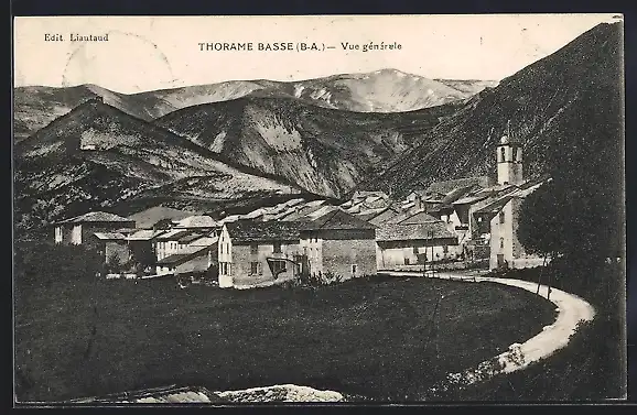 AK Thorame Basse, B.A., Vue générale, Gesamtansicht des Dorfes mit Bergen im Hintergrund