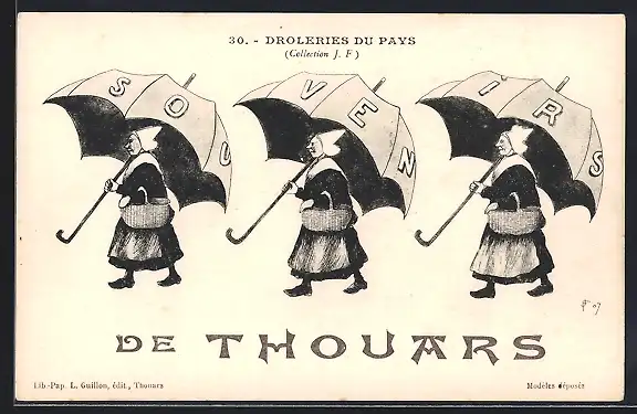 AK Thouars, Frauen in Trachten mit Regenschirmen