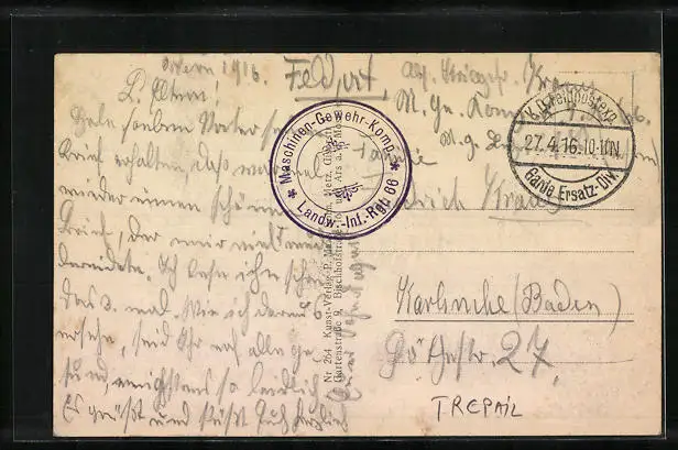 alte Ansichtskarte, gelaufen 1916 als Feldpost, guter Zustand