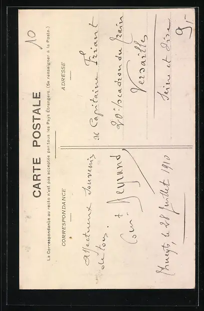 Personenbezogene Daten auf der Rückseite der Karte wurden durch blauen Textmarker unkenntlich gemacht. Die blauen Stellen sind auf die Vorderseite durchgeweicht und wirken sich negativ auf das Postkartenfoto aus