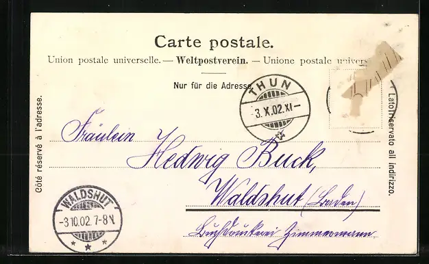 gelaufen 1902, Briefmarke entfernt, guter Zustand