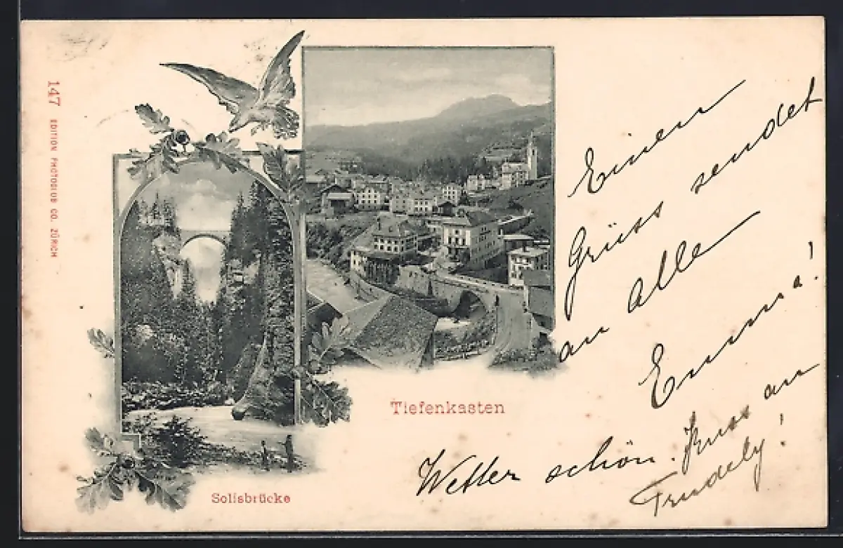 AK Tiefencastel, Teilansicht, Solisbrücke