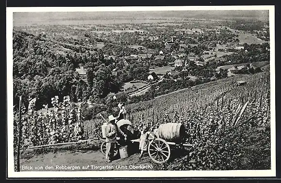 AK Tiergarten / Oberkirch, Weinlese, Weinbergsblick auf den Ort