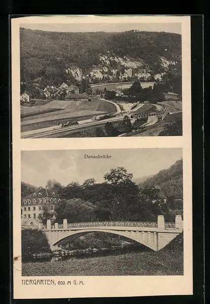 AK Tiergarten, Ortsansicht und Donaubrücke