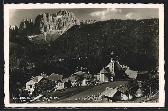 AK Tiers, Ortsansicht mit Rosengarten aus der Vogelschau