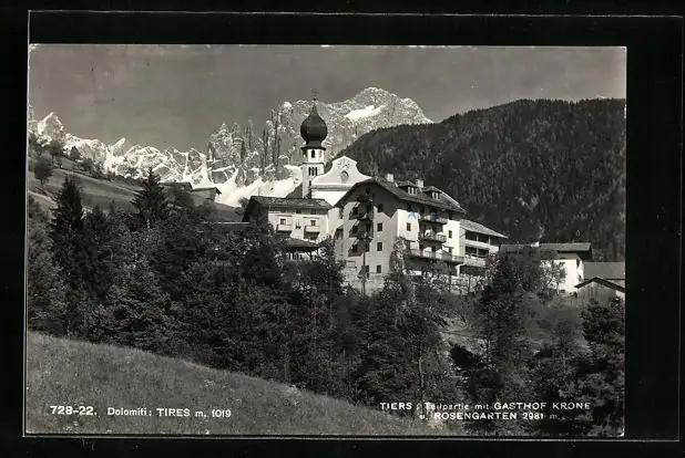 AK Tiers, Teilpartie mit Gasthof Krone und Rosengarten