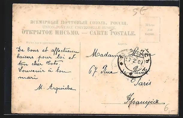 alte Ansichtskarte, gelaufen 1907, Briefmarke entfernt, guter Zustand
