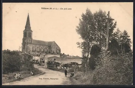 AK Tilliers, Un joli coin avec vue sur l`église et le chemin rustique