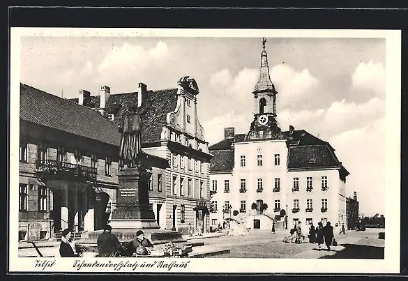 AK Tilsit, Schenkendorfplatz mit Rathaus
