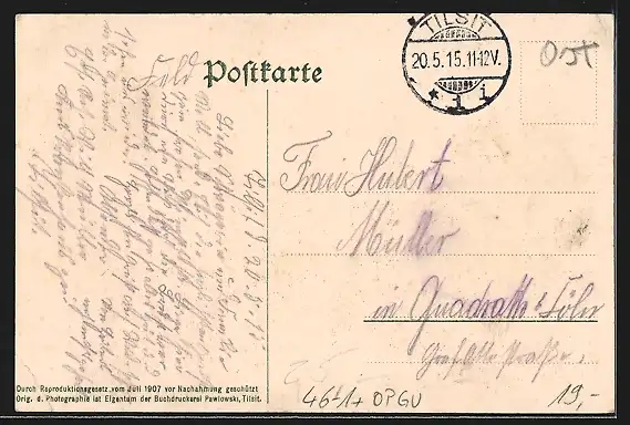 alte Ansichtskarte, gelaufen 1915, Eckknicke li. oben u. re. unten, guter Zustand