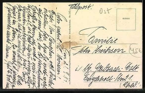 alte Ansichtskarte, gelaufen, rückseitig Klebe- und Papierreste, guter Zustand