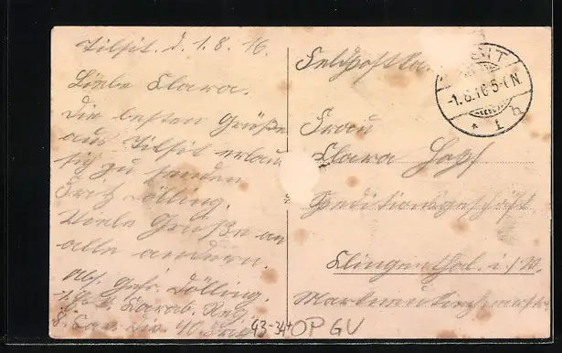 gelaufen 1916, rückseitig Oberflächenschaden, guter Zustand