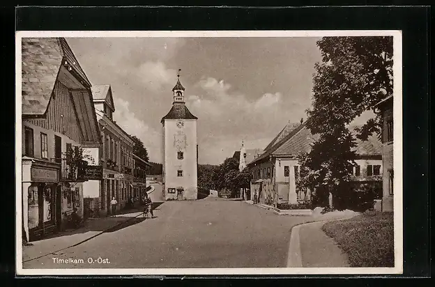 AK Timelkam, Strassenpartie mit Blick zur Kirche