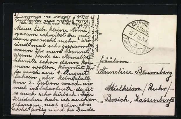 alte Ansichtskarte, gelaufen 1918, Briefmarke entfernt, guter Zustand