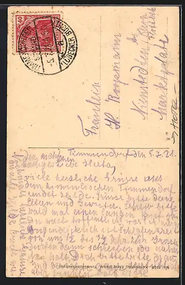 alte Ansichtskarte, gelaufen 1921, Bugspur oben li., guter Zustand