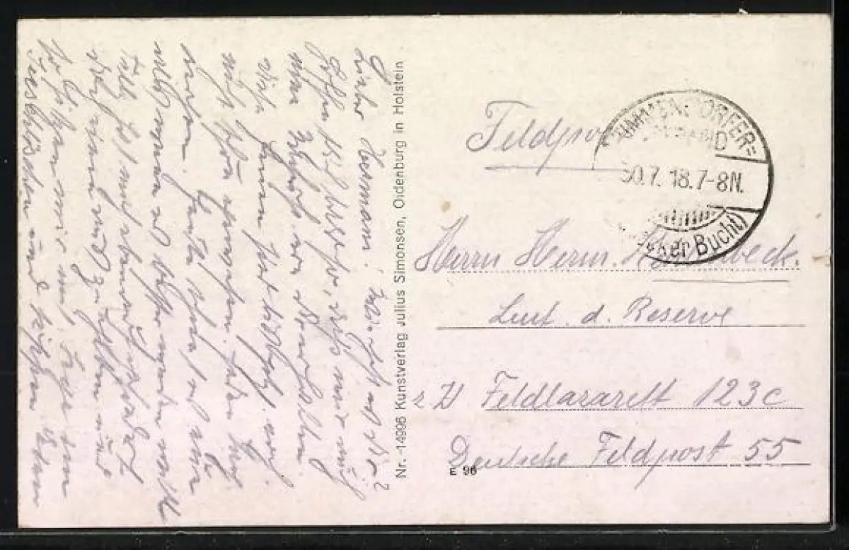 gelaufen 1918, minimaler Einriss li. mittig, guter Zustand