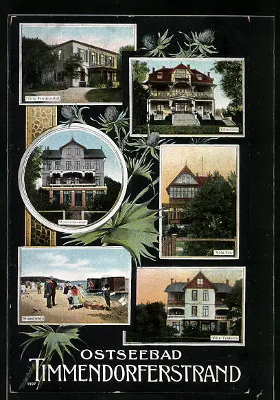 AK Timmendorferstrand, Villen Friedensthal, Ida und Teutonia, Strandleben
