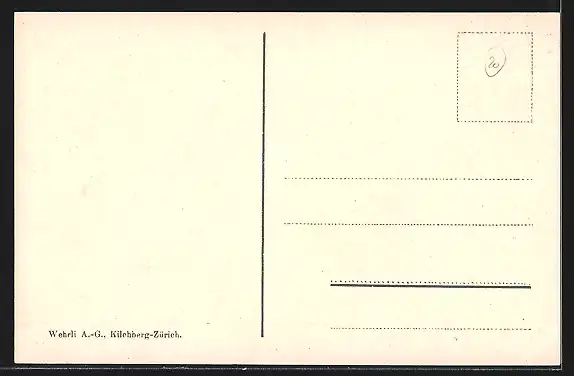 Personenbezogene Daten auf der Rückseite der Karte wurden durch blauen Textmarker unkenntlich gemacht. Die blauen Stellen sind auf die Vorderseite durchgeweicht und wirken sich negativ auf das Postkartenfoto aus