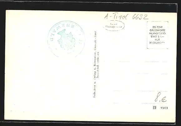 Personenbezogene Daten auf der Rückseite der Karte wurden durch blauen Textmarker unkenntlich gemacht. Die blauen Stellen sind auf die Vorderseite durchgeweicht und wirken sich negativ auf das Postkartenfoto aus