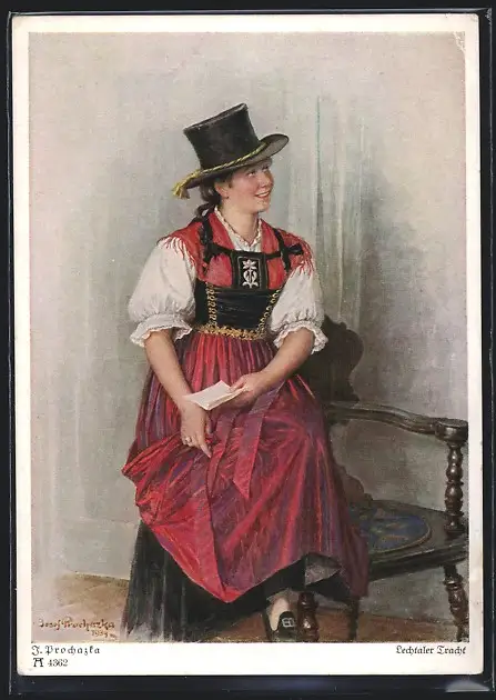 AK Tirol, junge Frau in Lechtaler Tracht