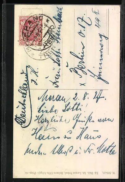 alte Ansichtskarte, gelaufen 1927, Eckknick re. unten, guter Zustand