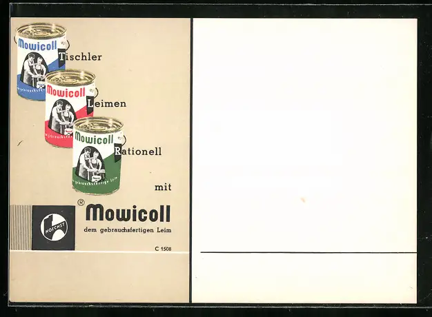 AK Tischler leimen rationell mit Mowicoll, Leim-Reklame von Hoechst