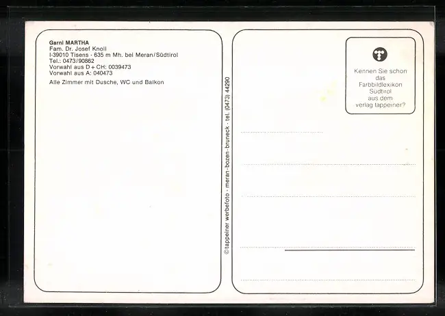 AK Tisens bei Meran, Pension Garni Martha, Innenansichten