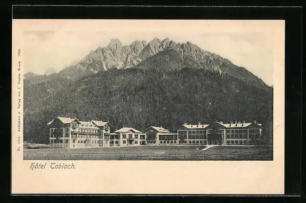 AK Toblach, Hotel Toblach vor Bergkulisse