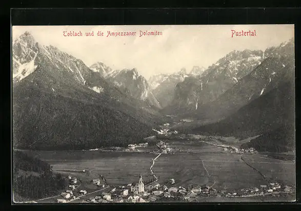 AK Toblach, Ortsansicht mit den Ampezzaner Dolomiten