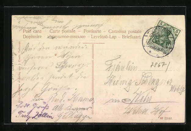 alte Ansichtskarte, gelaufen 1908, guter Zustand