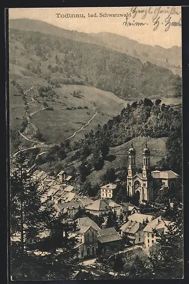 AK Todtnau i. bad. Schwarzwald, Totalansicht mit Kirche