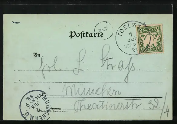 alte Ansichtskarte, gelaufen 1898, guter Zustand