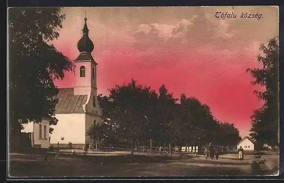 AK Tofalu, Közseg, Ortsansicht mit Kirche