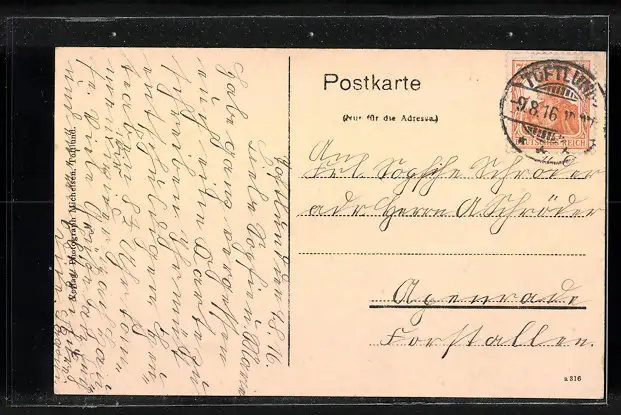 alte Ansichtskarte, gelaufen 1916, Oberflächenschaden rechte Kante, guter Zustand